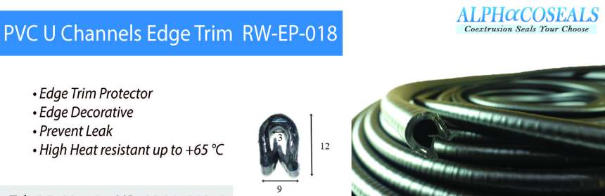 ซีลกระดูกงู PVC  U-Channels รุ่น RW-EP-018 ซีลกระดูกงู สำหรับการใช้งานซีลกันบาด ปกป้องขอบคมต่างๆ เช่น ซีลขอบกระจก  ซีลขอบเหล็ก ซีลขอบหน้าต่าง  ซีลตู้ไฟ  เป็นต้น กันซีลกันรั่ว กันน้ำ ซีล หรือใช้สำหรับการตกแต่งเพื่อความเป็นระเบียบและสวยงาม  ซีลกระดูกงู รุ่น RW-EP-018 สามารถทนการลามไฟ ทนสารเคมี น้ำมัน Ozone และ UV ได้ดี อุณหภูมิการใช้งานสูงสุด 65 °C