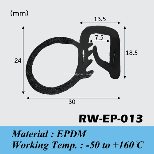 ซีลยางกระดูกงู RW-EP-013 ความแข็ง 70 shore A ทนความร้อน ทนสารเคมี ไอน้ำได้ดี เหมาะสำหรับการใช้งานในที่ร่มและกลางแจ้ง อายุการใช้งานนาน ไม่เสื่อมสภาพเร็ว